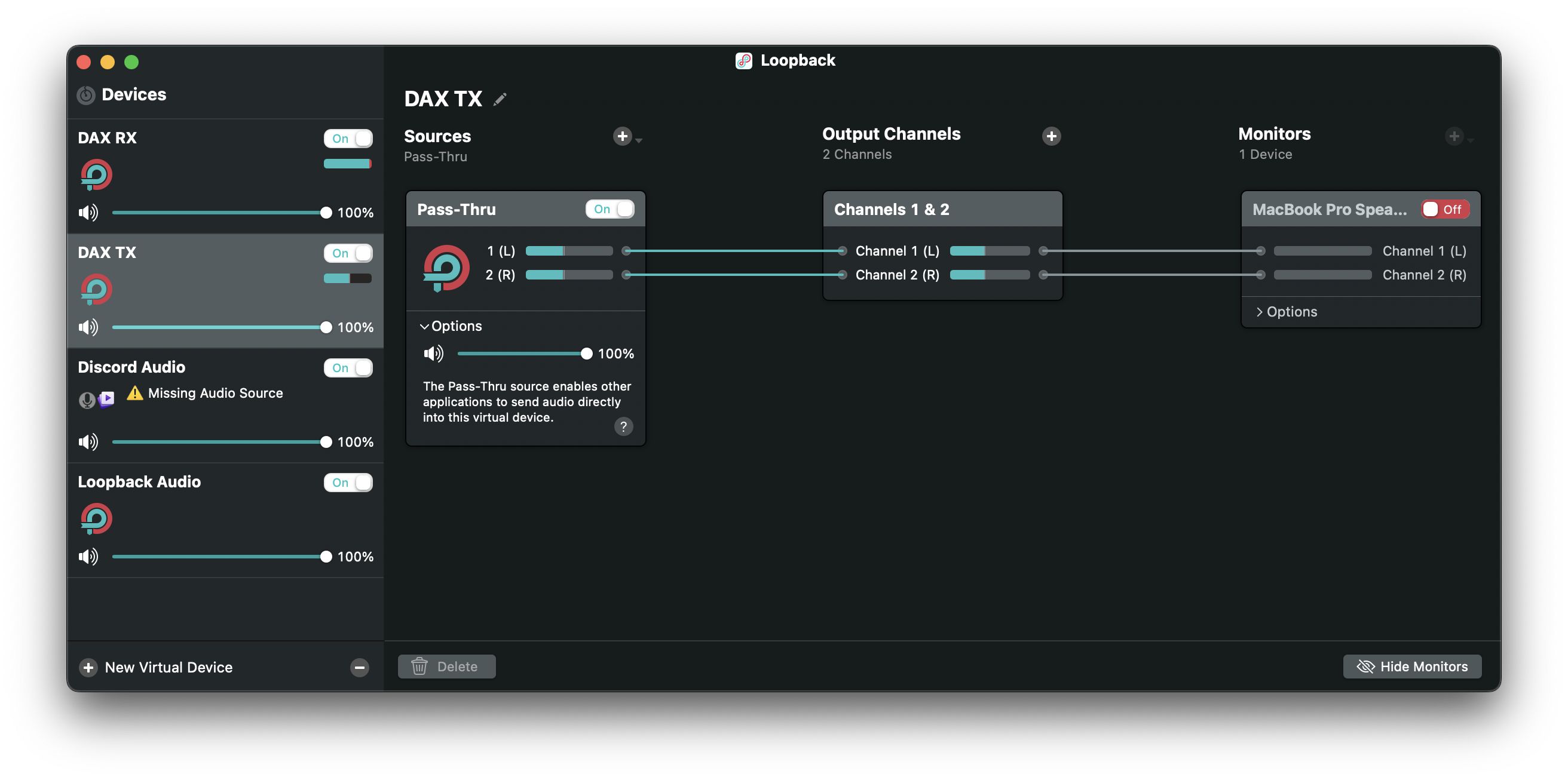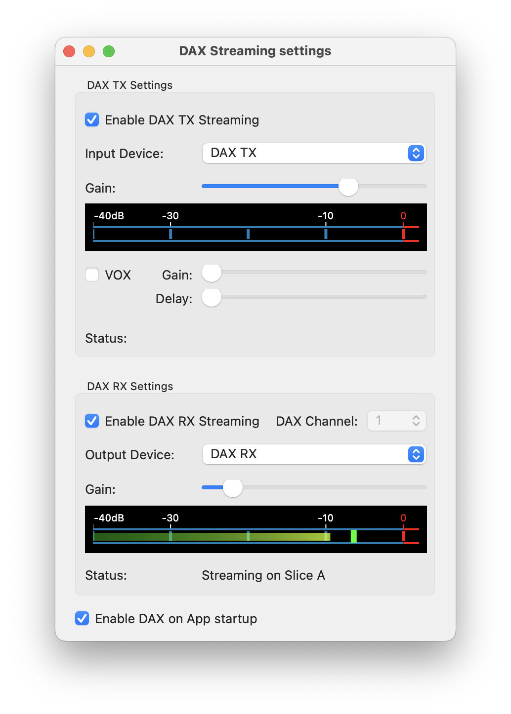 - Check Enable DAX RX Streaming and choose Input Device DAX RX