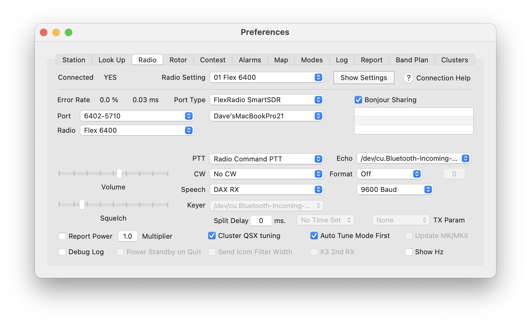This is my setup on a MacBook Pro M1 with Ventura 13.1 for a FlexRadio 6400 for Digital Modes. It is vital that the apps be launched in the order of SmartSDR, MacLoggerDX, WSJT-X, and finally Gridtracker because each one depends on the apps before it to be run.